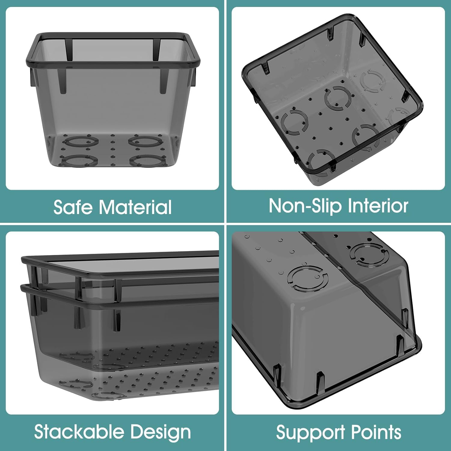 - Long Lasting and Non-Slip: The plastic has 3-5 times the impact strength of other materials and is robust and long lasting. The bottom of the storage organizers has a non-slip design to prevent the tray from moving around when the drawer is opened and closed.