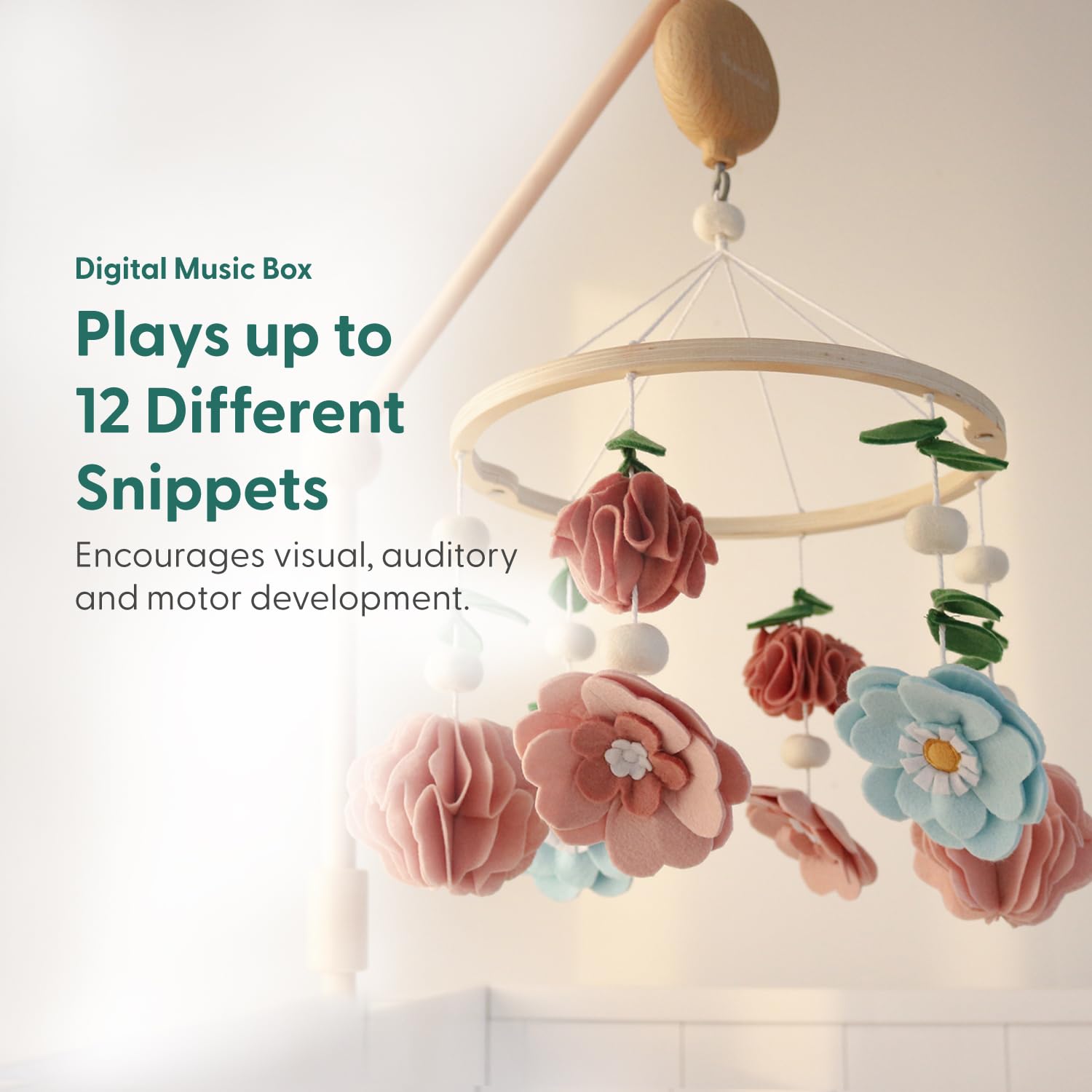 The Peanutshell Crib Mobile for Girls - Wooden Musical Baby Crib Mobile with 12 Lullabies, Wildflower Baby Floral Nursery Decor